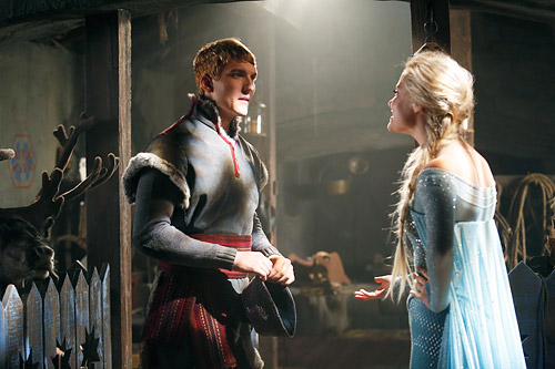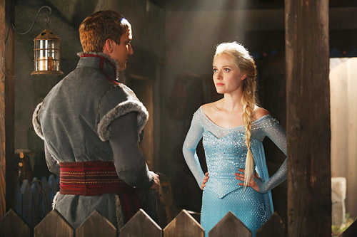 自从《童话镇 Once Upon a Time》宣布引入《冰雪奇缘》人物之后,该剧犹如焕发第二春,引起大量关注。ABC也趁此造势,公布《冰雪奇缘》人物剧照。这是第四季首播集"两姊妹的故事 A Tale of Two Sisters"。 可以看到Georgina Haig扮演的Elsa和Scott Michael Foster扮演的Kristoff在讨论事情。而且大家也可以看到三次元麋鹿Sven。