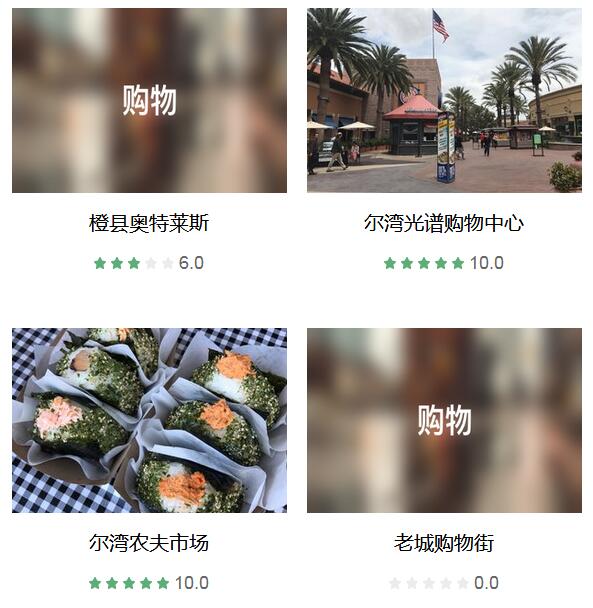 Irvine Regional Park 、 加州大学尔湾分校 、 水晶大教堂 、 四海豆浆 、 橙县奥特莱斯 、 橘子郡大公园 、 鼎泰丰 、 三年2班 、 尔湾光谱购物中心 、 沸点 、 圣胡安教堂