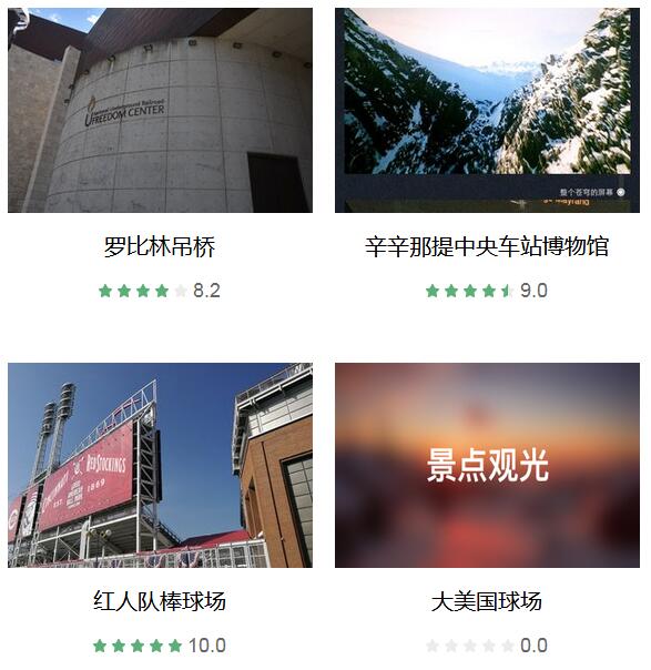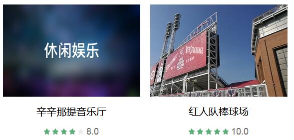 罗比林吊桥 、 辛辛那提中央车站博物馆 、 National Underground Railroad Freedom Center 、 辛辛那提音乐厅 、 圣十字-Immaculata天主教堂 、 红人队棒球场 、 忆江南 、 双龙