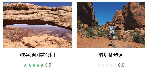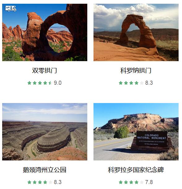 双零拱门 、 科罗纳拱门 、 峡谷地国家公园 、 死马点州立公园 、 鹅颈湾州立公园 、 科罗拉多国家纪念碑 、 威尔逊拱门 、 四川榕 、 Wolfe Ranch 、 Arches Thai 、 Pasta Jay's