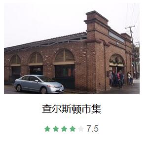 查尔斯顿市集 、 米德尔顿庄园 、 约克镇号航母 、 The Battery and White Point花园 、 波萝喷泉 、 木兰庄园 、 Rainbow Row 、 桑特尔堡国家纪念碑 、 旧时奴隶交易博物馆 、